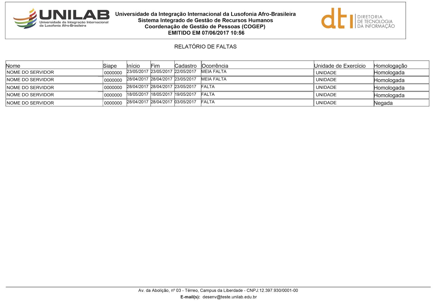 - Relatório de Frequências com Homologações Negadas