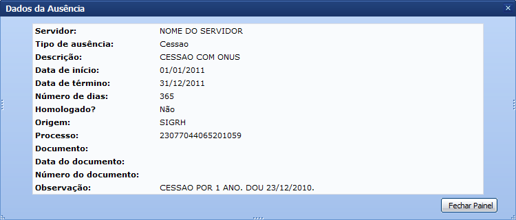 . Logo, serão exibidos detalhadamente os Dados da Ausência.